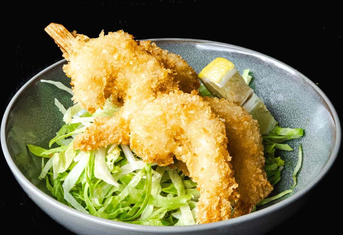 Dybstegt tigerrejer i panko. Serveres med chilimayo.