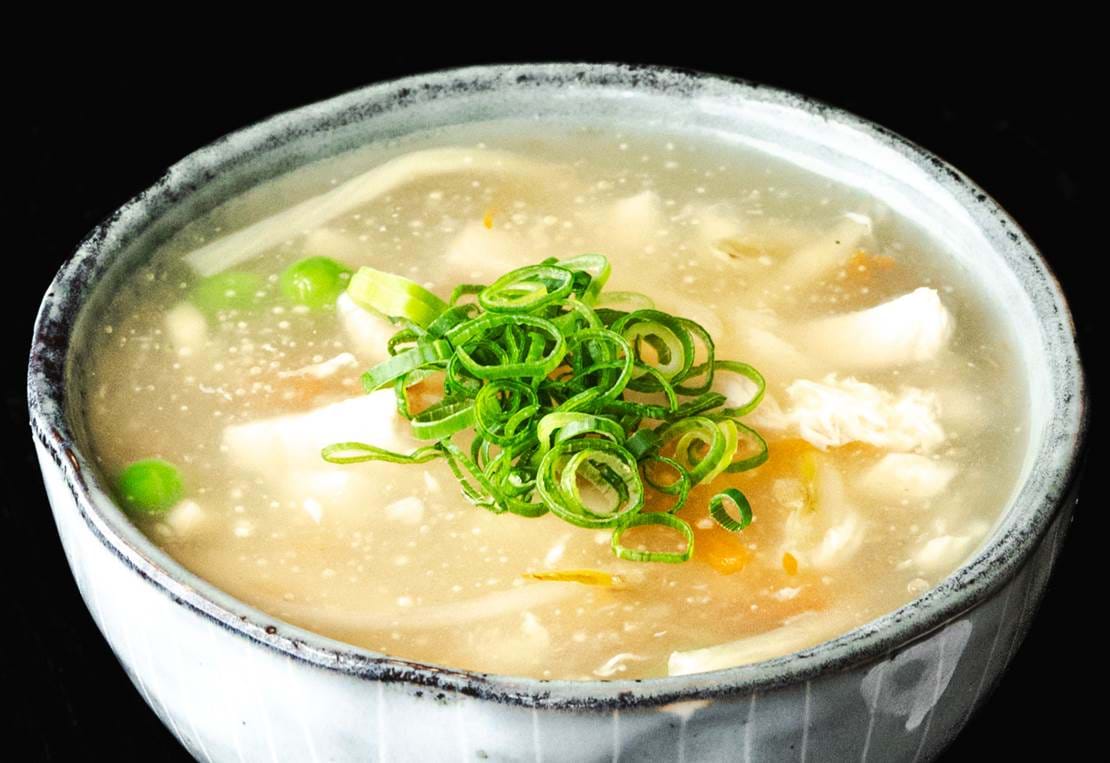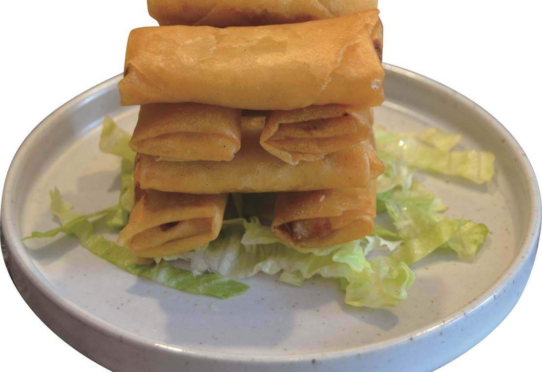 Forretter Peking suppe Mini forårsruller Indbagte kinarejer Hovedretter Kylling i karry Oksekød med bambusskud Alle hovedretter serveres med ris.