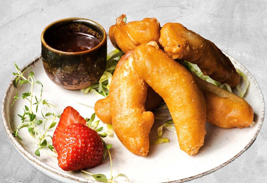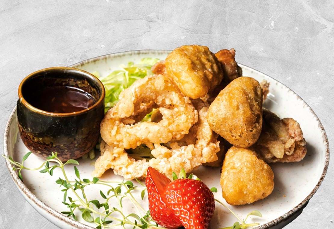 4 Ebi fry 4 Mini forårsruller 4 Dumpling 4 Kylling karaage Chilimayo og Sweet chili sauce